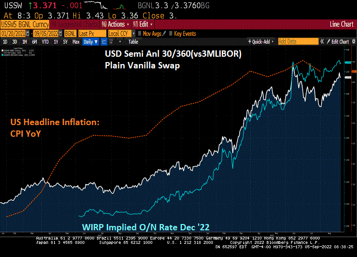 Inflation? US inflation is near its highest in 40 years and the USDollar Plain Vanilla Swap was at 0.50 when Biden first took office as President and is now 3.371 (quite an increase!).
