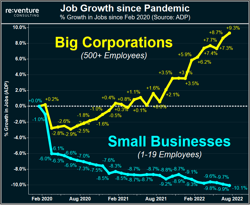 And not surprisingly, job growth has accrued to big corporations and not small businesses.