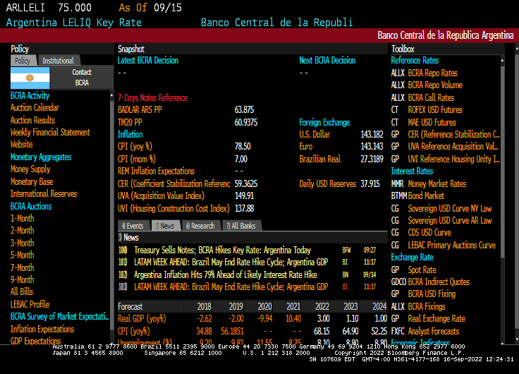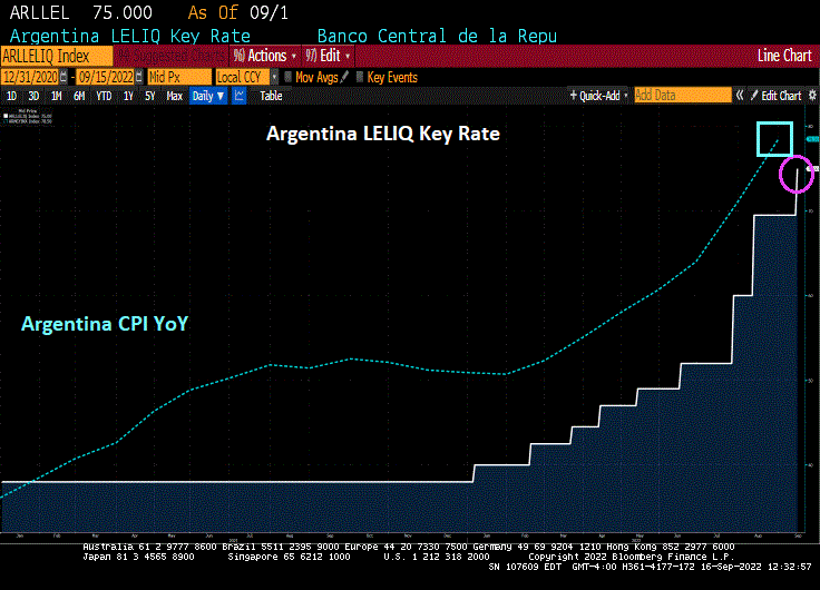 Inflation is so horrendous in Argentina (near 100%) that their central bank is hiking their interest rates to 75%.