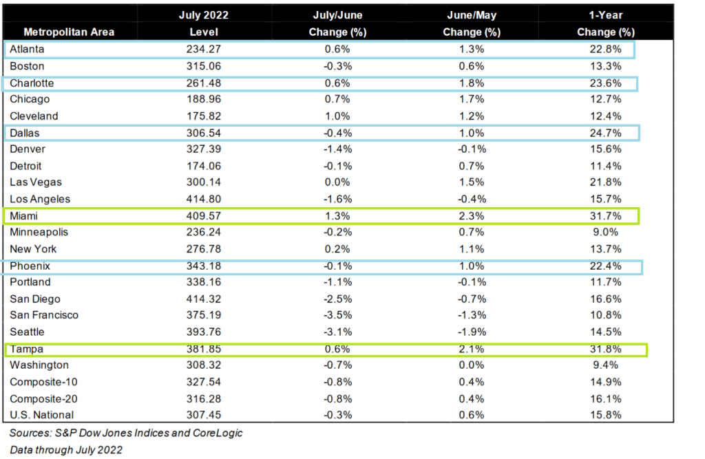 Welcome to DeSantisville! Miami and Tampa Florida are the only metro areas in the nation (at least of the top 20 metro areas) growing at >30% growth in home prices.