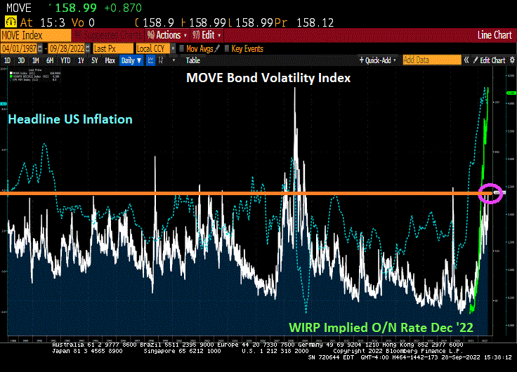 The MOVE bond volatility index keeps rising as inflation roars and The Fed fights back,