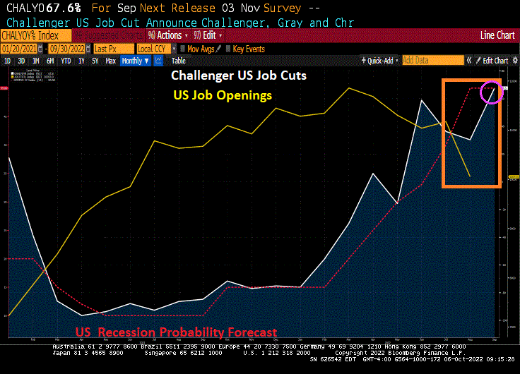 Challenger US Job Cut Announcements for September rose 67.6%, the highest since … Covid-19 outbreak in early 2020. This comes after the JOLTS (job openings) fell the most since … Covid-19.