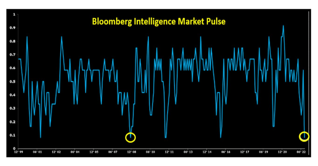 This index quantifies sentiment using 6 factors — price breadth, pairwise correlation, low vol perf, defensive vs. cyclical sector perf, high vs. low leverage perf and high yield spreads.
