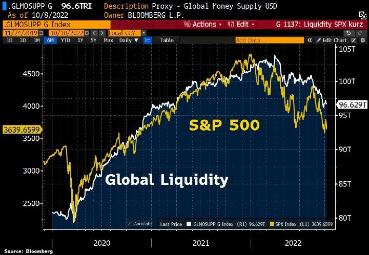 Here is the S&P 500 against global liquidity.