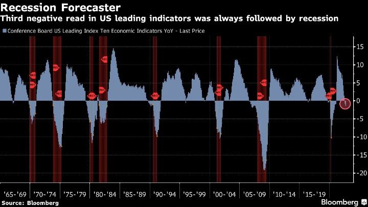 4 thoughts on “Bloomberg Recession Probability Is 100% Over Next 12 Months, Conference Board Registers Third Straight Negative Read (Here Comes The Night!)”