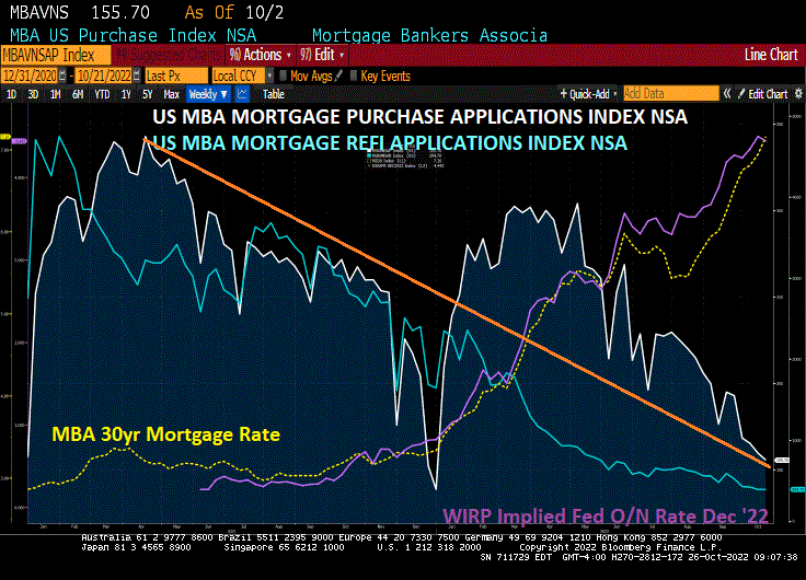But mortgage purchase and refi applications are showing a strongly negative trend as The Fed tightens.
