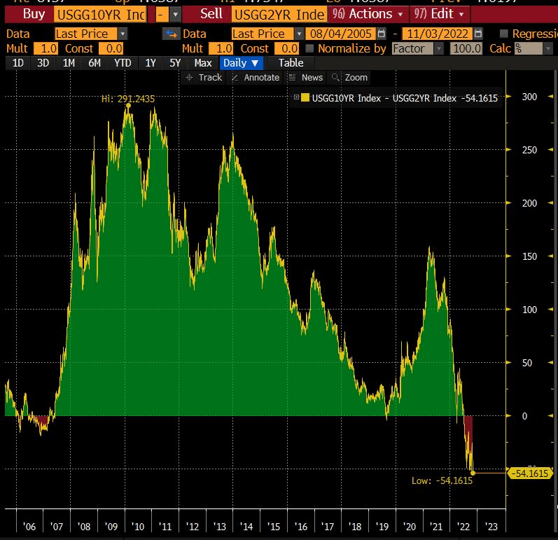 Yikes! The 2s10s Yield Curve Inversion Is the worst since the 1980s.
