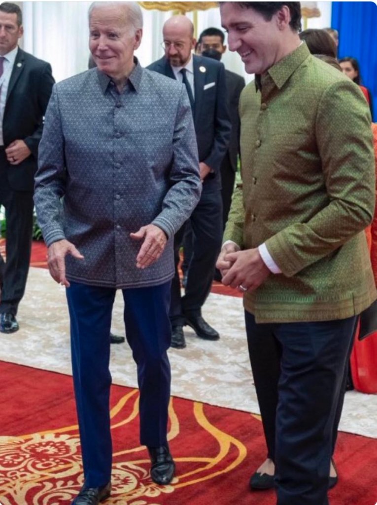 Again, why are Biden and Trudeau wearing Mao jackets in Bali? And why is Biden looking like a robot?? Biden does look like he is saying “Take me to my leader, Pei.”