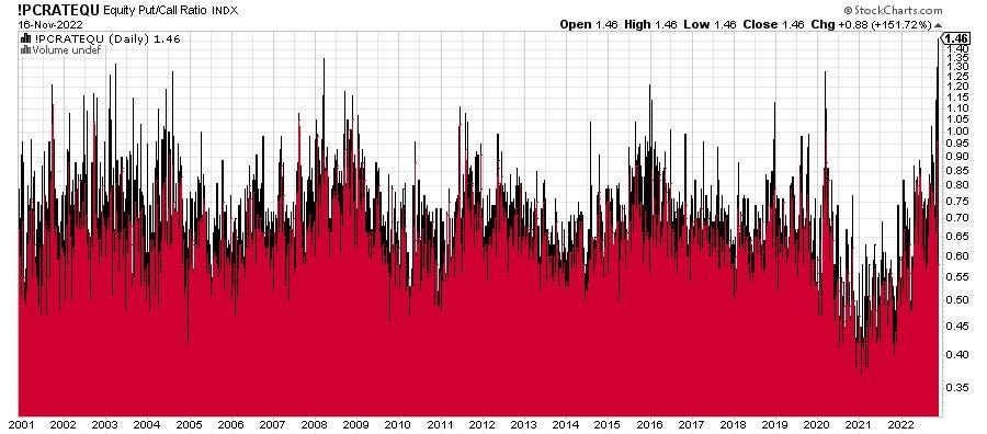 Yesterday’s PUT/CALL ratio was the highest in history at 1.46. That is higher than 2001 and 2008.