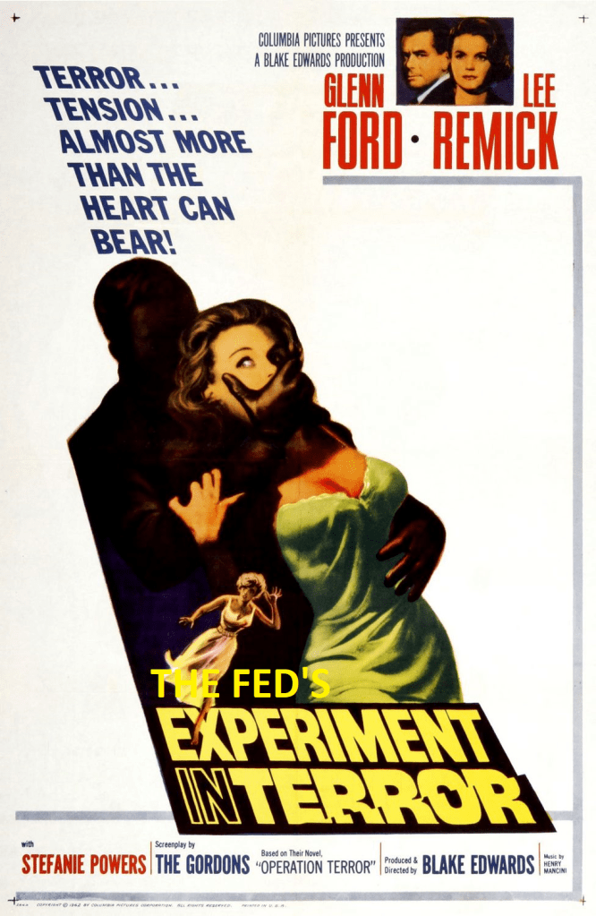 Sorry, the poster for Experiment In Terror looks like Biden sniffing a teenager girl.