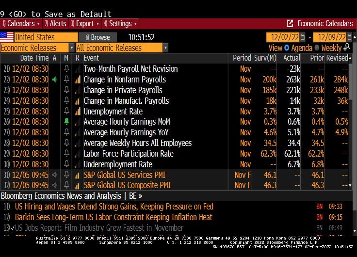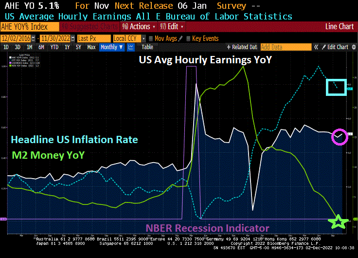 U.S. employers added 263,000 jobs in November, and the nation’s unemployment rate stayed the same at 3.7 percent, according to data released Friday by the Labor Department. Meanwhile, average hourly pay for workers rose 5.1 percent from a year earlier, to $32.82 from $31.23. But the US headline inflation rate at the last reading was 7.7% YoY that equates to -2.2% REAL Average Hourly Earnings YoY.