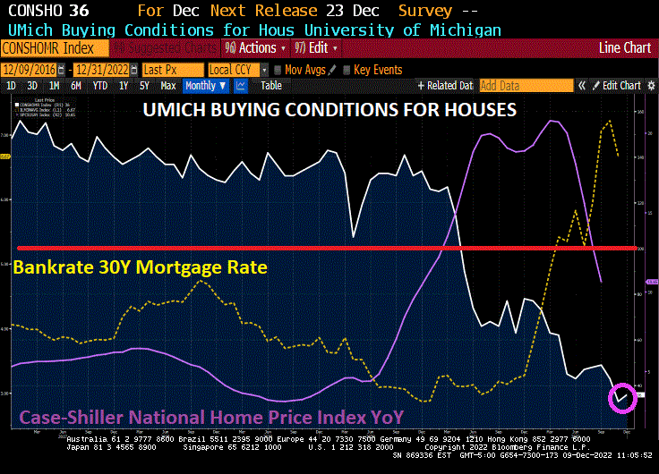 The UMich consumer survey for buying conditions for house rose slightly in December to 36, well below 100 (the baseline).