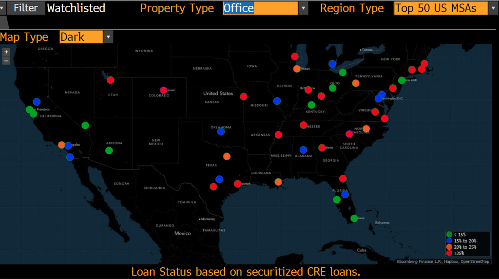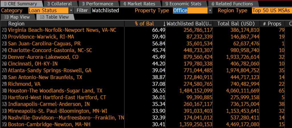On the office property front, we can see red (>25% of commercial loans watchlisted) pretty much across the board.