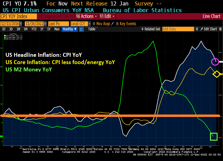Is inflation “gone in November”? Nope. Slowing, yes, but at 7.1% YoY and core inflation at 6.0% YoY, it is still considerably higher than The Fed’s target of 2%.