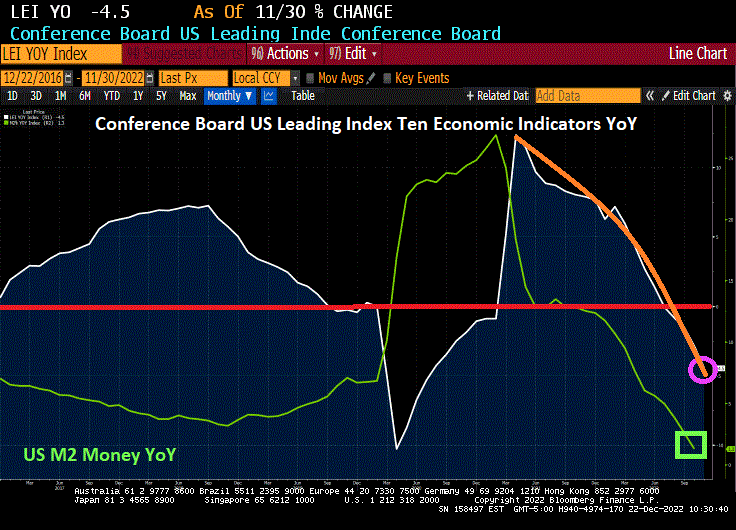 The Conference Board’s US Leading Economic Indicator was released this morning and it wasn’t pleasant. The US Leading Index was down -1% MoM in November.