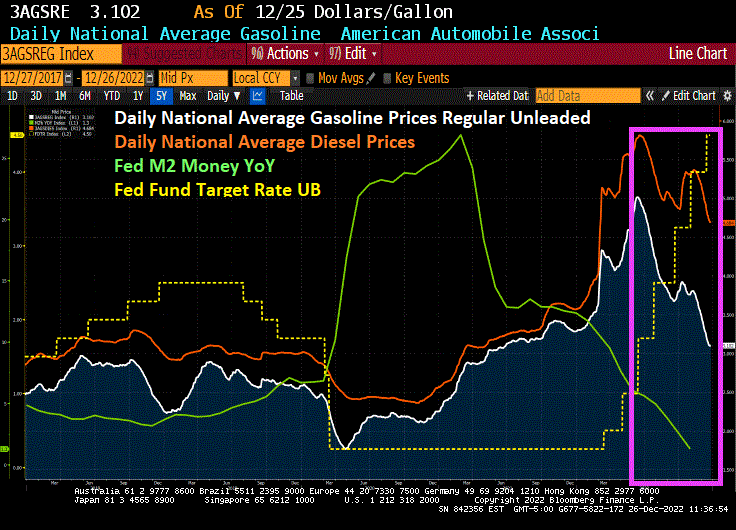 As the global economy slows and global central banks continue to tighten, we are seeing gasoline and diesel prices falling.