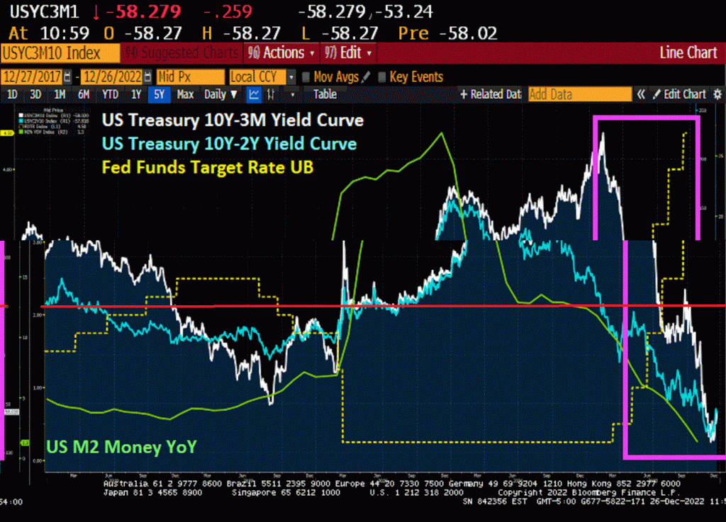 Speaking of tightening monetary policy, the US Treasury yield curves have flattened/inverted since The Fed started tightening with rate increases to fight inflation.