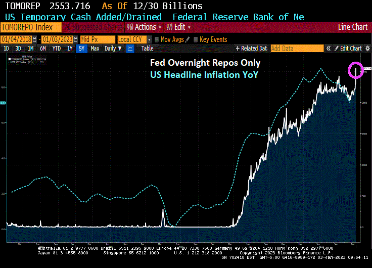 First, banks are stashing cash with the New York Fed on an “overnight basis” although it is looking pretty permanent to me. Repos (or repuchase agreements) soared to $2.55 TRILLION as of 12/30/22.