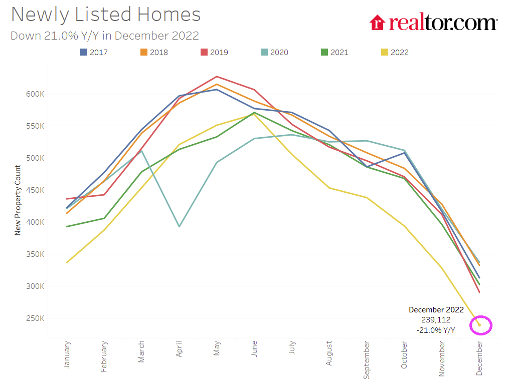 3 thoughts on “Fed Fireball! Newly Listed Homes Decline -21% YoY In December (Worst Decline In 6 Years) As Fed Tightens Monetary Noose”