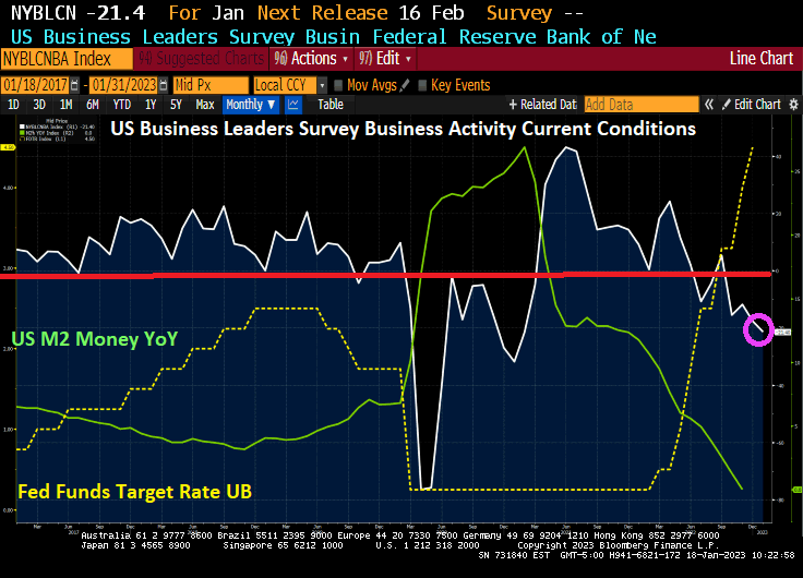 Let’s start wit the US business leaders survey of current conditions. It just crashed to -21.4