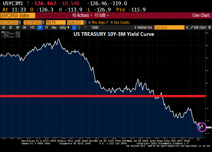 On the Treasury front, the US 10Y-3M yield curve inverted further (a signal of impending recession) just tanked to -126.462 basis points.