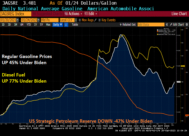 Not really. US gasoline prices are UP 45% under Biden, diesel prices (the lifeblood of the shipping industry) are UP 77 under Clueless Joe and the Strategic Petroleum Reserve is DOWN -47% under China Joe.