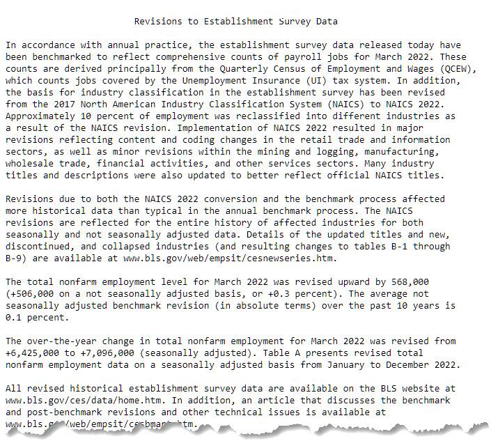 | process, the NAICS 2022 conversion, and the updating of seasonal adjustment factors. |