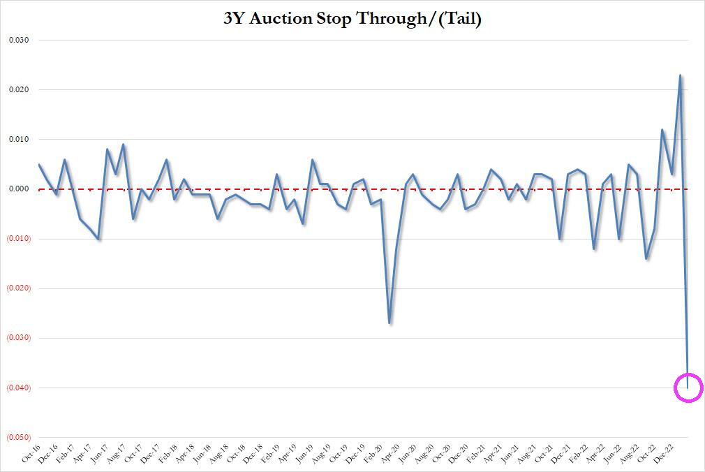 After Jerome Powell raved about the strong US labor market and oddly ignored the staggering crowding-out of US interest payments on its massive debt, the US Treasury’s 3-year debt auction was … a Hinderburg moment.