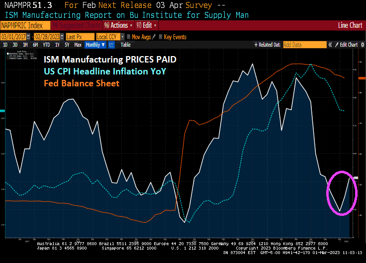 Treasury Secretary (and former Federal Reserve Chair) Janet Yellen kept saying inflation was simply transitory. And for a while, the US saw cooling inflation. But we just saw ISM Manufacturing prices paid rise in February for the second straight month.