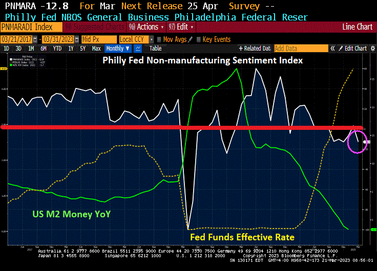 The Philly Fed non-manufacturing sentiment index just tanked to -12.8 as The Federal Reserve removes its Covid-related stimulus.