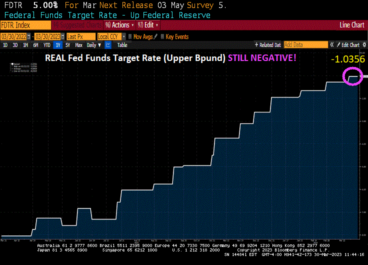 The Fed Funds Target rate (upper bound) is STILL negative at -1.0356%.