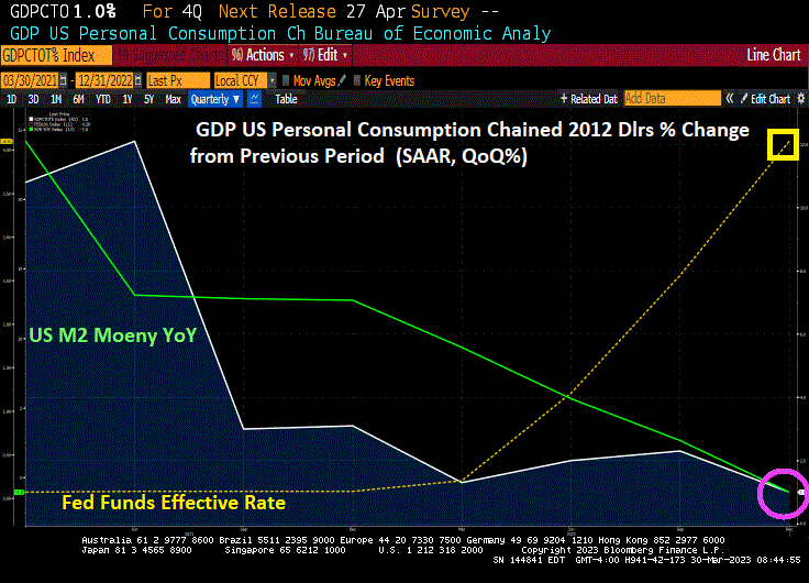 The Covid outbreak in early 2020 (from which I came close to dying) resulted in legendary Fed stimulus and Federal government spending. But as The Fed attempts to cool inflation by slowing M2 Money printing and raising The Fed’s target rate, we are seeing the lowest personal consumption expenditures print under Biden’s reign of error, a measly 1%.
