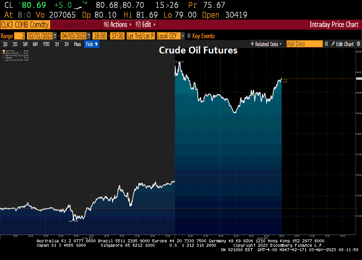 Today, crude oil futures are up 6.62% to over $80 per barrel.