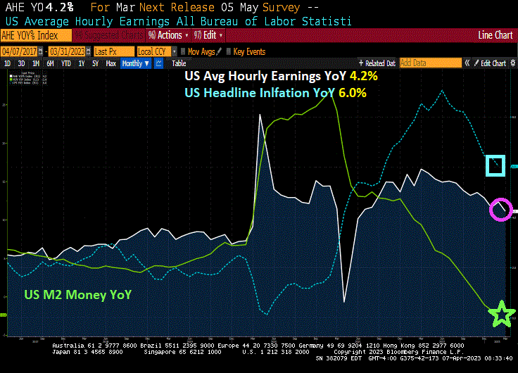And here is the rub on wages. Average hourly earnings growth fell to 4.2% YoY, too bad inflation is 6% and expected to rise with the summer.