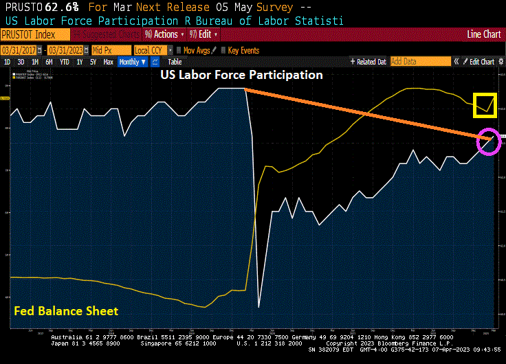 236k jobs added in March, down from a revised 326k jobs added in February. The unemployment rate fell to 3.5% and labor force participation rose slightly to 62.6%.