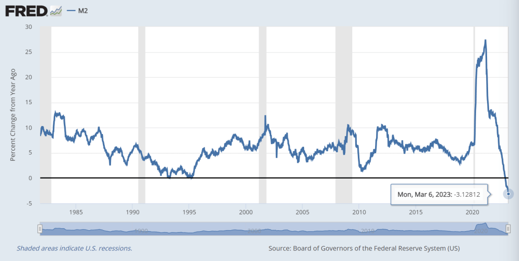 America’s mega bank, The Federal Reserve, is slowing M2 Money growth so rapidly that it looks like it is depthcharging the US economy.