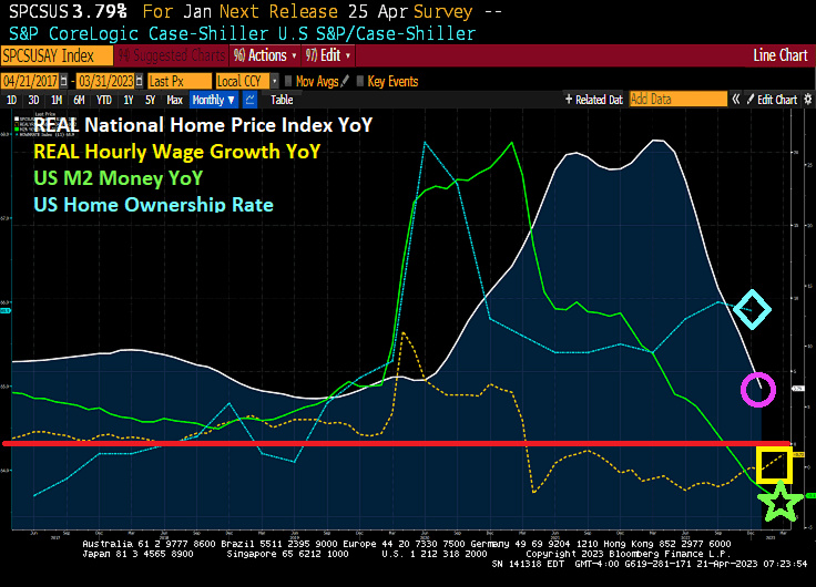 It has been a tough road for the US economy since Covid and Biden’s Reign of Error. For the first time since July 2020 under President Trump, we have finally seen average hourly earnings growth YoY exceed average home price growth YoY.