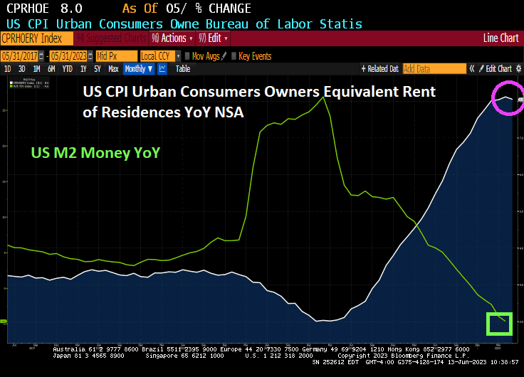 Yes, inflation is slowing, Inflation (CPI YoY) slowed to 4% in May, twice The Fed’s target rate of inflation. And core inflation is still raging at 5.3% YoY.