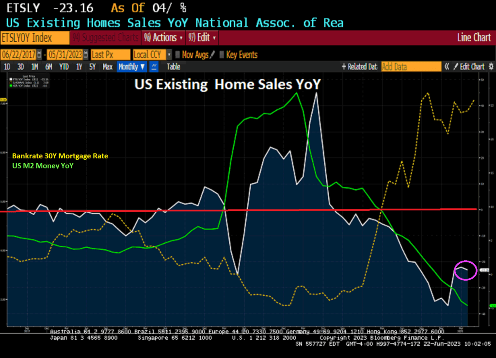 Like a bad good news, bad news joke, the good news is that US existing home sales ROSE 0.2% in May. The bad news? Existing home sales are DOWN -23.16% on a year-over-year basis.