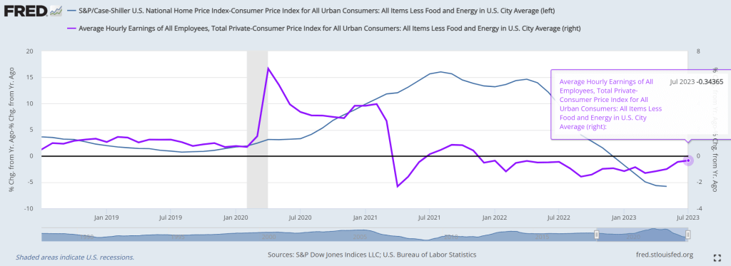And real home price growth corresponds to negative REAL hourly earnings growth YoY.