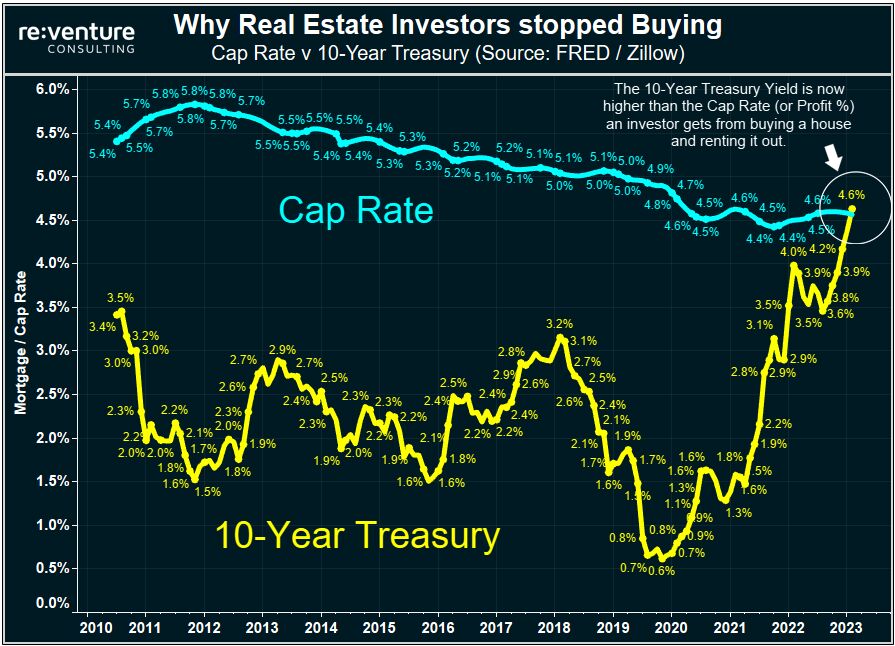 On the commercial real estate side, we see that the CRE cap rate is now lower than the 10Y Treasury yield.