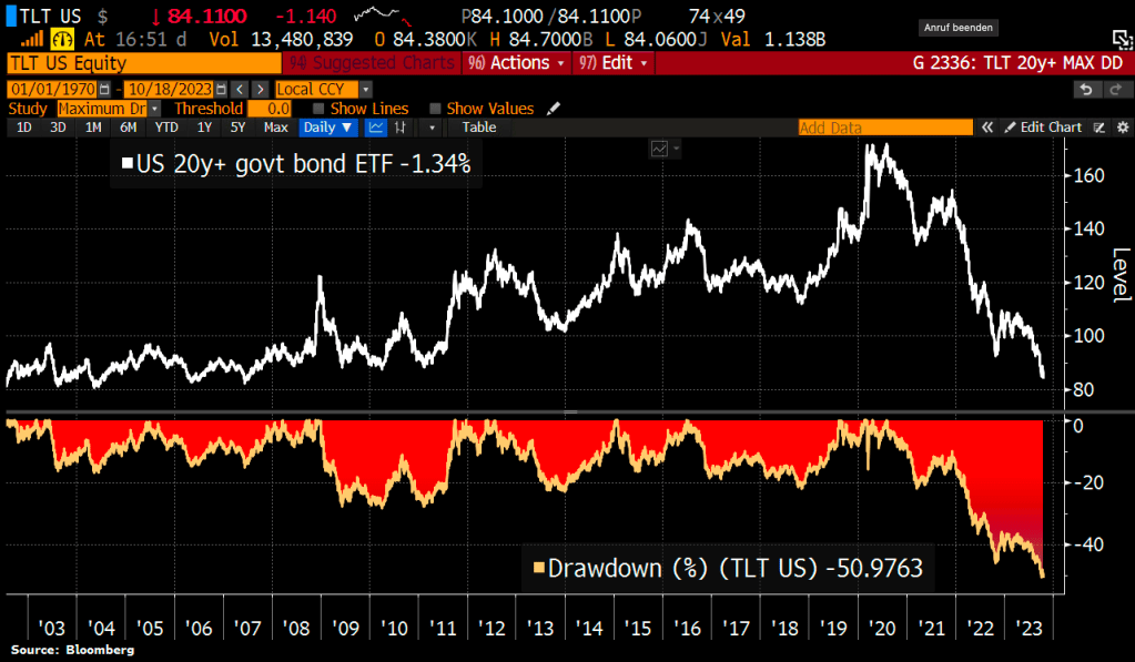 The iShares 20+ year Treasury Bond ETF (TLT) now down 51% from all-time high.