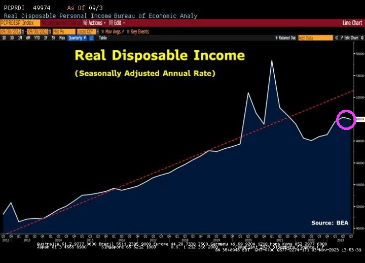 Meanwhile, US real disposable income is declining.