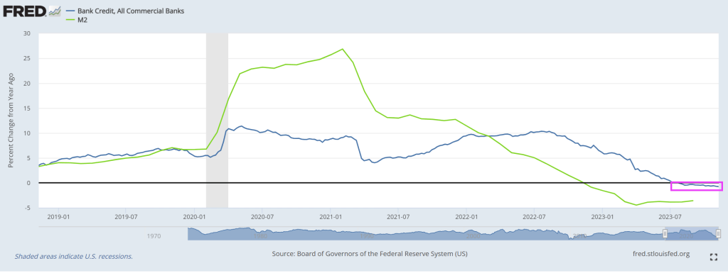 US bank credit growth has been negative for 16 straight weeks.