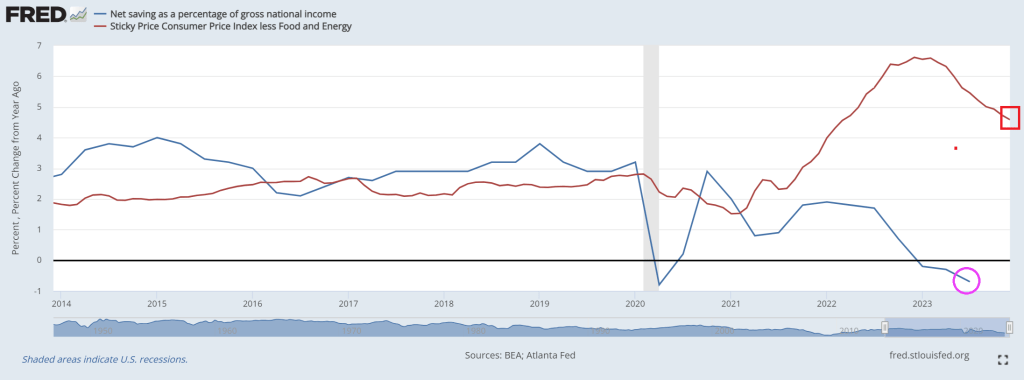 Savings as a percentage of GDP is actually NEGATIVE as sticky price inflation remains above 4%.