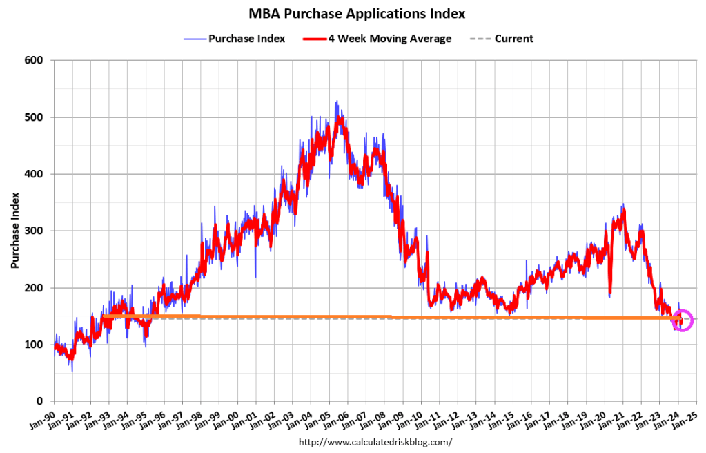 The Market Composite Index, a measure of mortgage loan application volume, decreased 0.7 percent on a seasonally adjusted basis from one week earlier. On an unadjusted basis, the Index decreased 0.4 percent compared with the previous week. The seasonally adjusted Purchase Index decreased 0.2 percent from one week earlier. The unadjusted Purchase Index increased 0.2 percent compared with the previous week and was 16 percent lower than the same week one year ago.