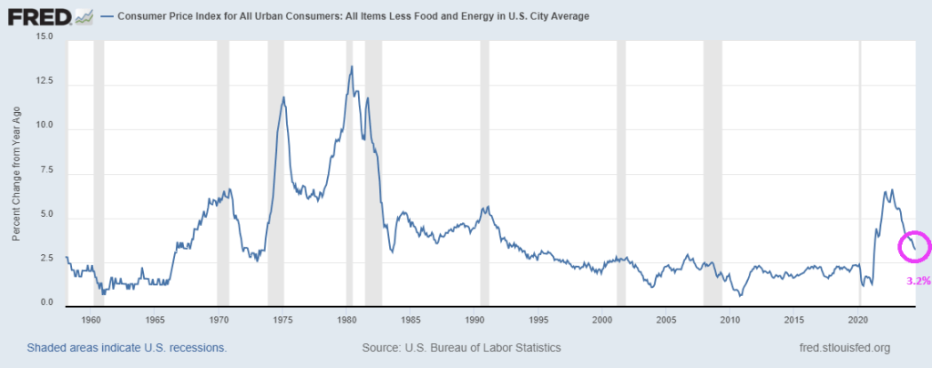 Core inflation is still hot at 3.2% YoY, although cooling.