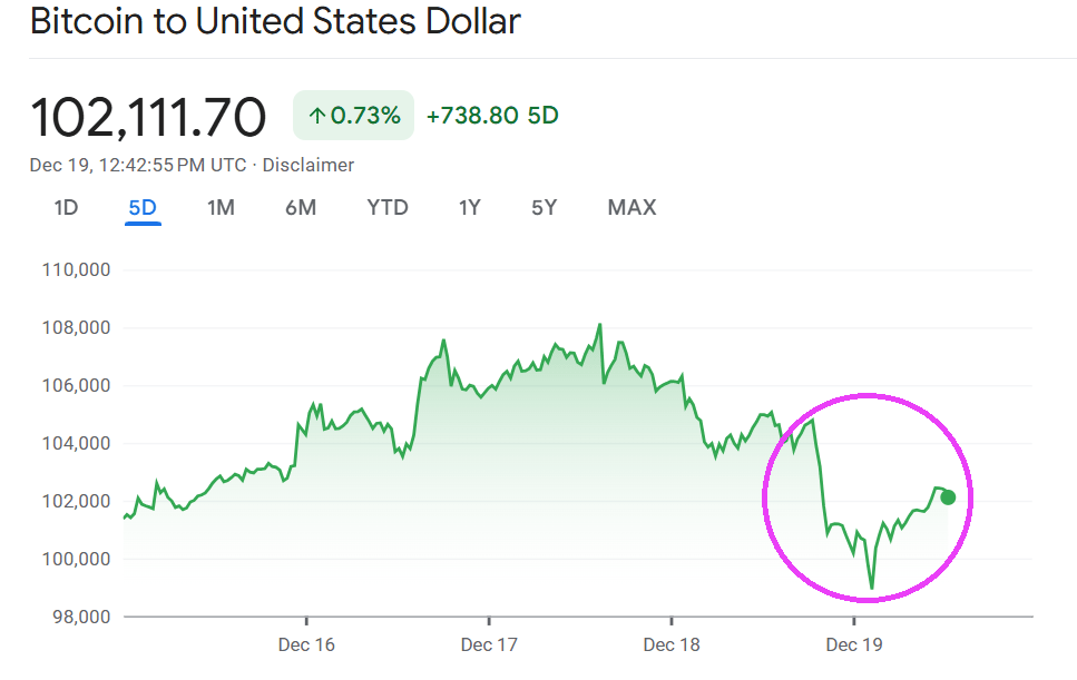 Bitcoin did likewise: dropping like a rock then bouncing back somwhat.