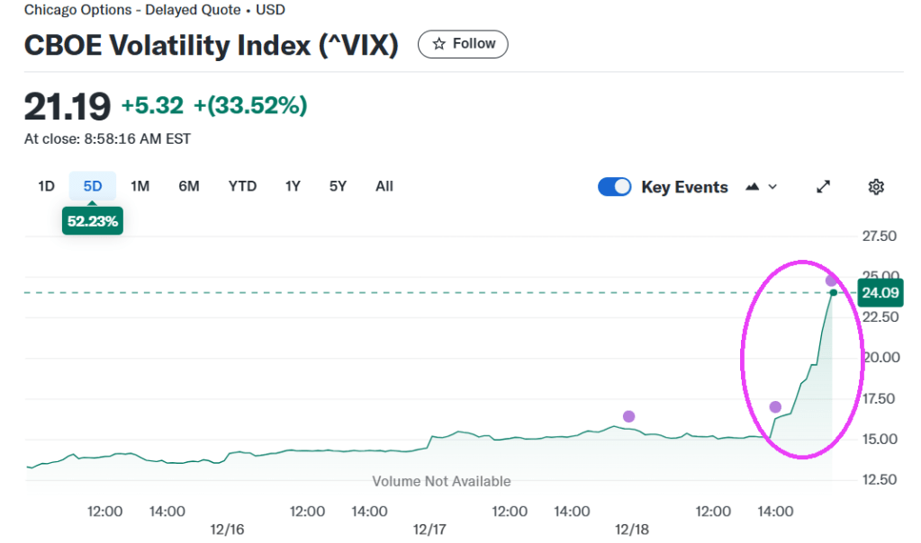 The CBOE VIX volatility index exploded upwards.