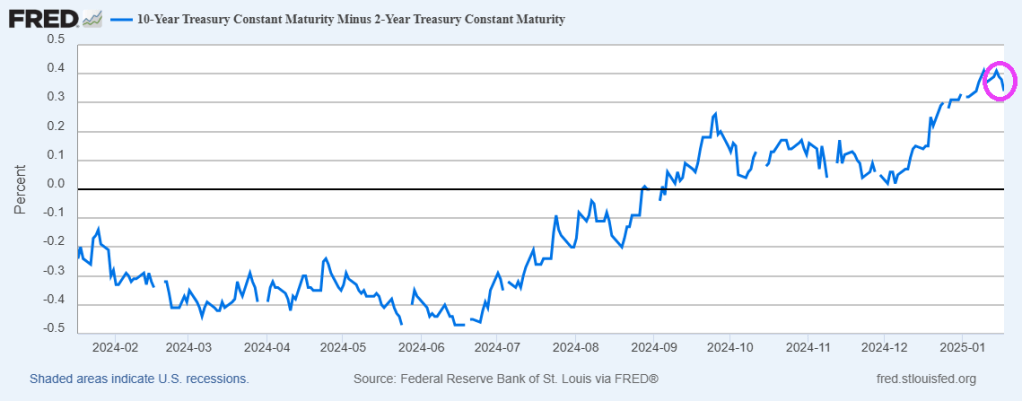 The US Treasury yield curve 10Y-2Y is finally positive after years of being negative.